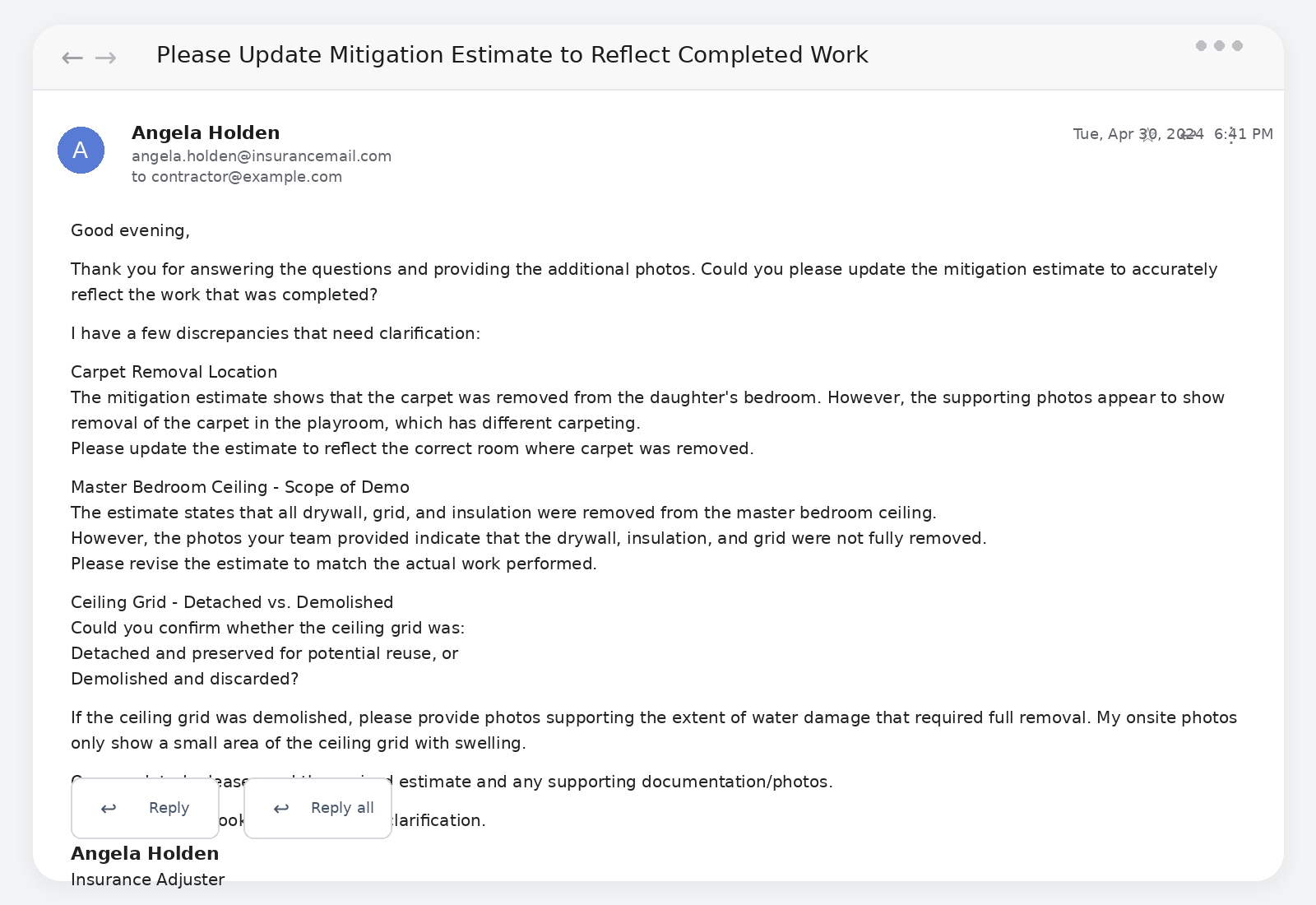 Maybe you already submitted an estimate and received a comparative estimate from the insurance company?
